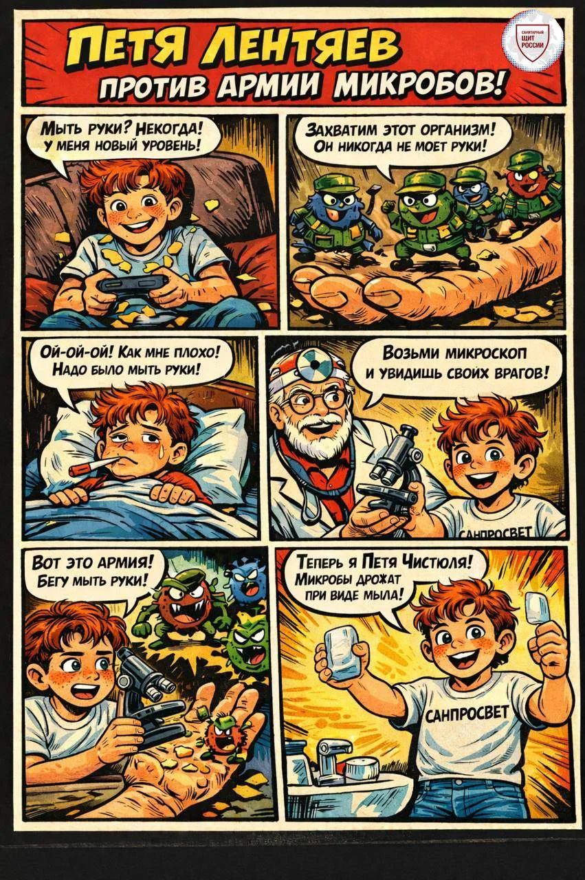 Помогите Пете победить микробов и станьте настоящими защитниками здоровья вместе с проектом «Санпросвет» Роспотребнадзора!